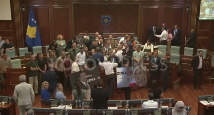 Пратениците на ДПК повторно ја блокираа говорницата на косовскиот Парламент